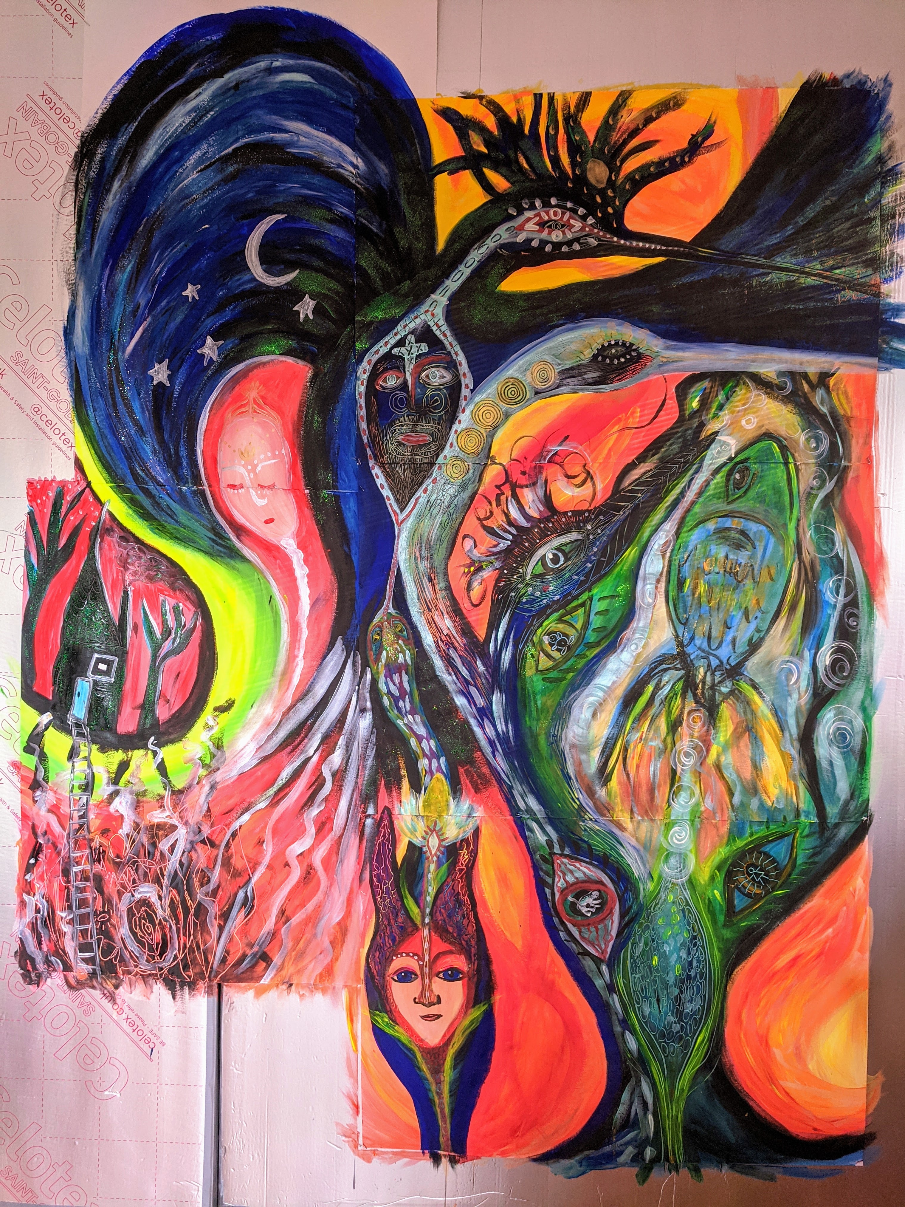 Trust is the cornerstone of the intuitive painting process. Its the foundation principle. When we get out of our own way and into our body, we’re opening up to the magic and mystery of the creative source of all. It’s a humbling practice of surrendering control and asking for guidance over and over. ‘I don’t know’ mindset is our biggest asset in stepping into the realm of our intuition. When we let go of figuring it out and needing to know, we relax and allow what really wants to come through. This is where the magic lies.